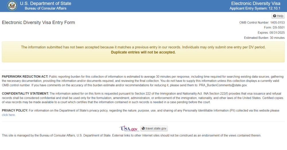 Przedwczoraj OIRA zakonczyla swoja ocene zmian w procesie DV wprowadzajacych wymog podania paszportu [1]. Nastepnym krokiem jest publikacja final rule w Federal Register, potem 0-30d na wejscie w zycie i nic nie bedzie stalo na przeszkodzie uruchomienia eDV27. https://www.reginfo.gov/public/do/eoDetails?rrid=1209611